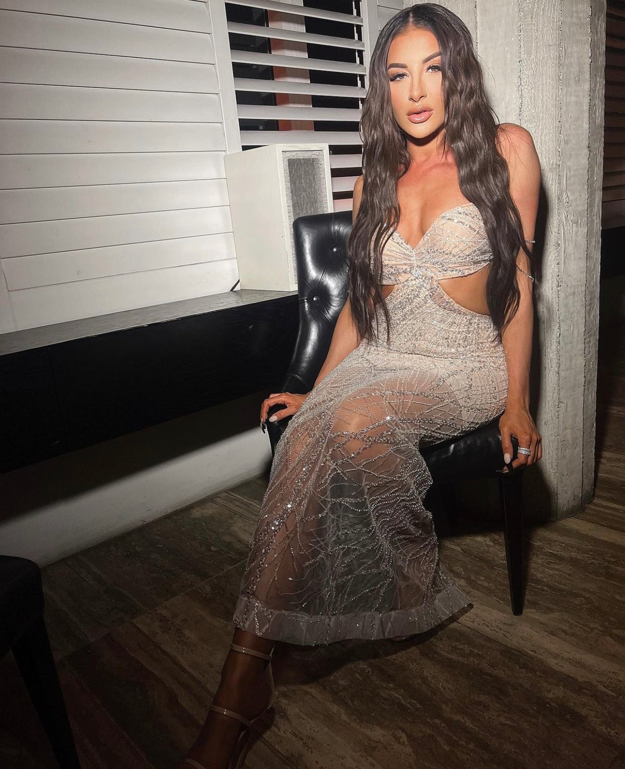 The Crystal Charlotte is a stunning, unique gown made with one of a kind crystal lace. The formal gown has a sweetheart neckline that moulds to the bust with a line of crystals that can be worn over or draped off the shoulders. The gown boasts beautiful cutouts on the torso, meeting at the back of the dress detailed with ruching, and accentuated with swarovski crystal buttons. Comes with an optional detachable mini slip or long slip. Refer to the 3 images of Sarah Emilia in the mini slip and the last 2 images of Siena in the long slip
