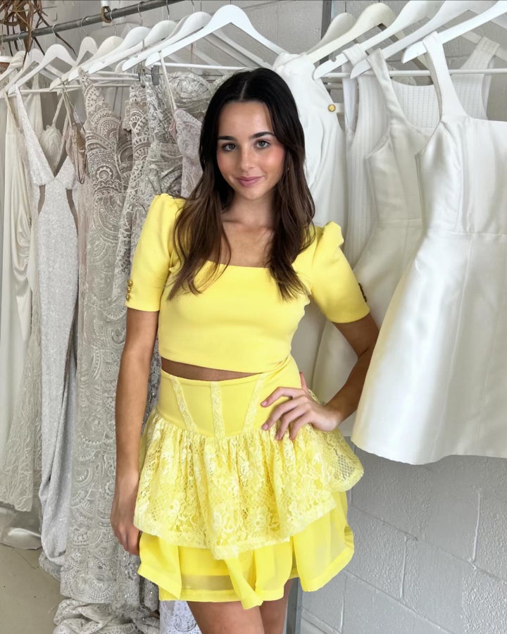 The skirt sale offers a fantastic opportunity to grab this stunning Lace Ruffle Skirt in Yellow at an unbeatable price! This beautiful skirt combines elegance and comfort, making it a must-have addition to your wardrobe. Perfect for a variety of occasions, from casual outings to more formal events, this skirt is designed to enhance your silhouette and make you feel fabulous.