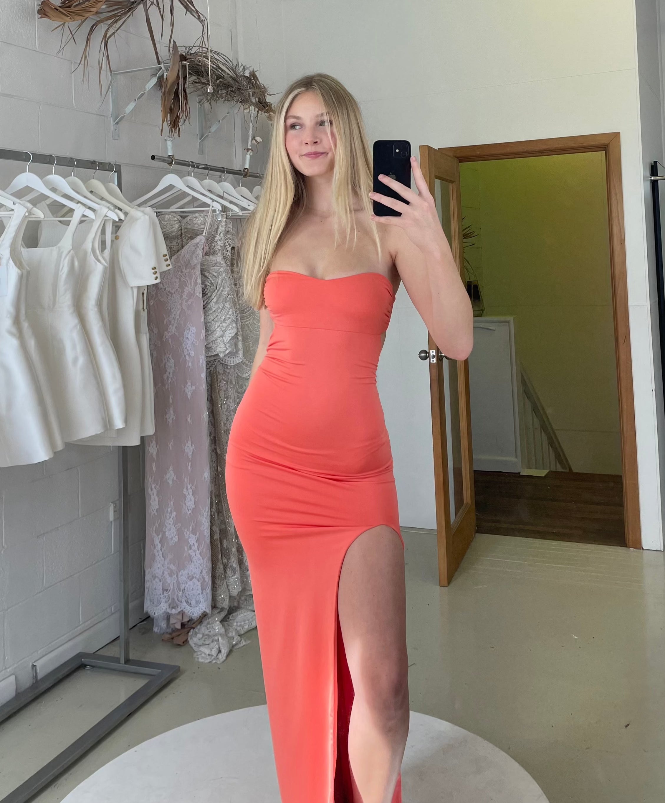 Introducing the Talieka Coral Gown, a stunning addition to your wardrobe that epitomizes sophistication and style. This exquisite gown is designed to enhance your natural beauty and make you feel truly special for any occasion. Whether you're attending a formal event, a wedding, or a night out with friends, the Talieka Coral Gown is your go-to choice for a statement-making outfit.