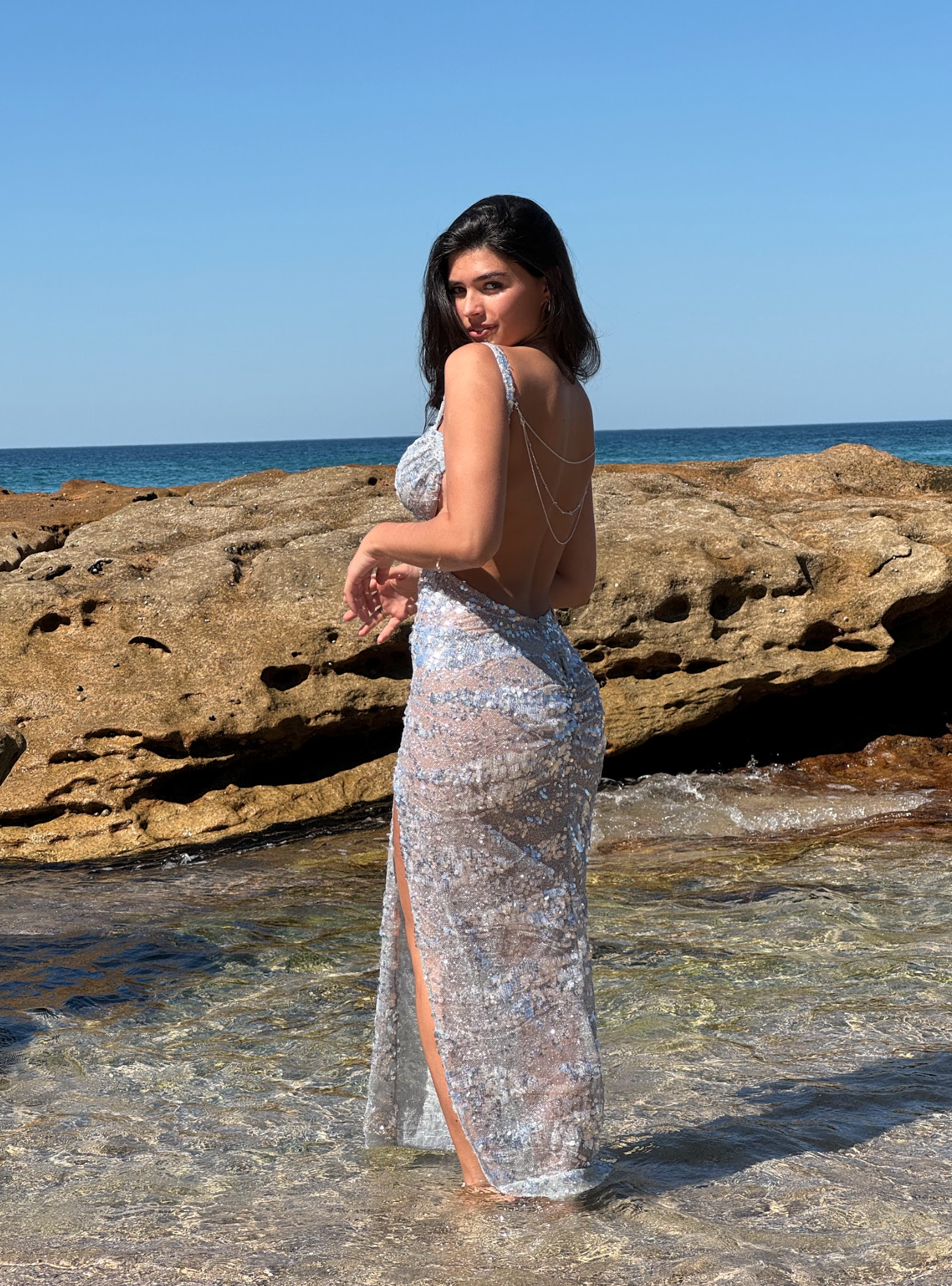 Introducing the Silver Starlet Gown, a limited edition masterpiece designed to make you the centre of attention. This extraordinary gown combines exquisite craftsmanship with unparalleled comfort, ensuring you look and feel your best for any special occasion.