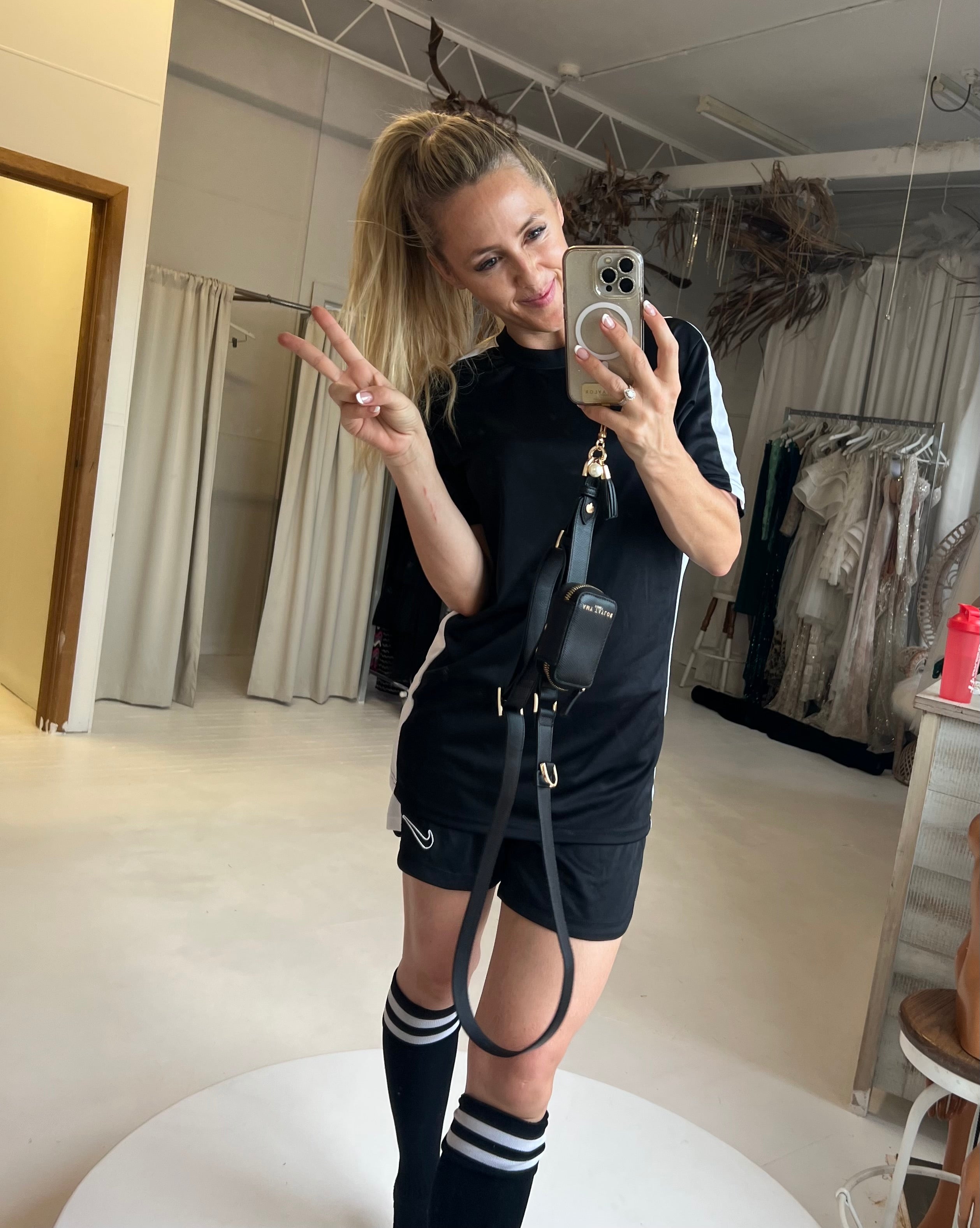 Inspired by the elegance and resilience of Hera, the queen of the gods, The Diosa Crossbody Strap is designed to elevate your style with grace and power. The Diosa is available in striking shades of black, red, and white, this vegan leather strap embodies timeless sophistication and strength. The textured interweave of the strap recalls Hera’s regal presence and the intricate tapestry of the cosmos, balancing luxury and functionality with ease. Perfect for a beach day or a night out, the strap keeps your phone safe and within reach, while adding a layer of polished sophistication to any outfit. Imagine strolling through a busy market, or attending an event, with your phone nestled perfectly against your side—fashion has never been so practical.